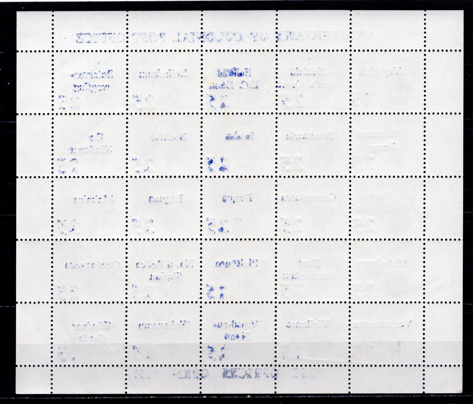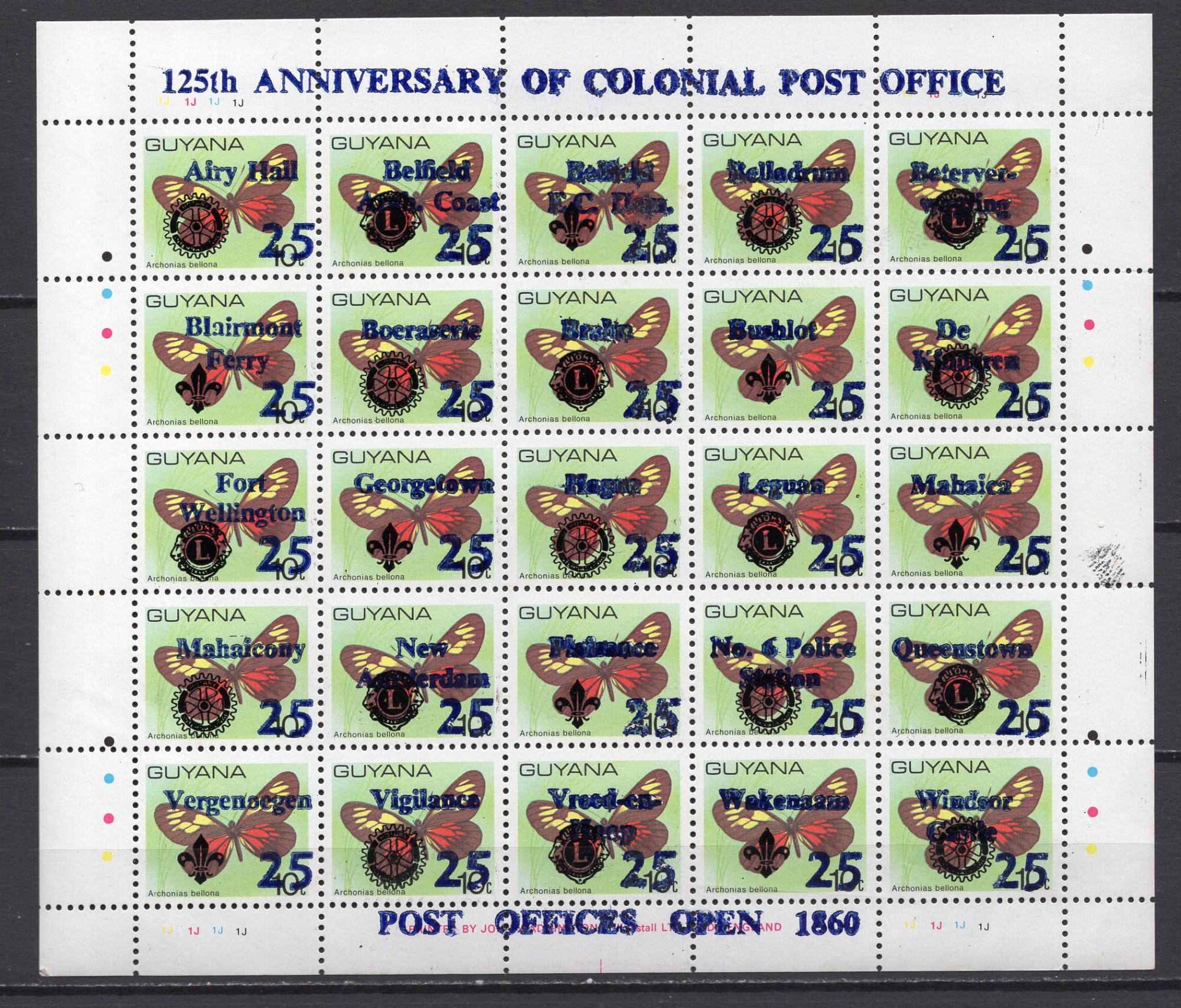 Почтовые марки. Гайана, 1985 г. Бабочки. Надпечатка. История почты. №1318-1342. (20,0 е)