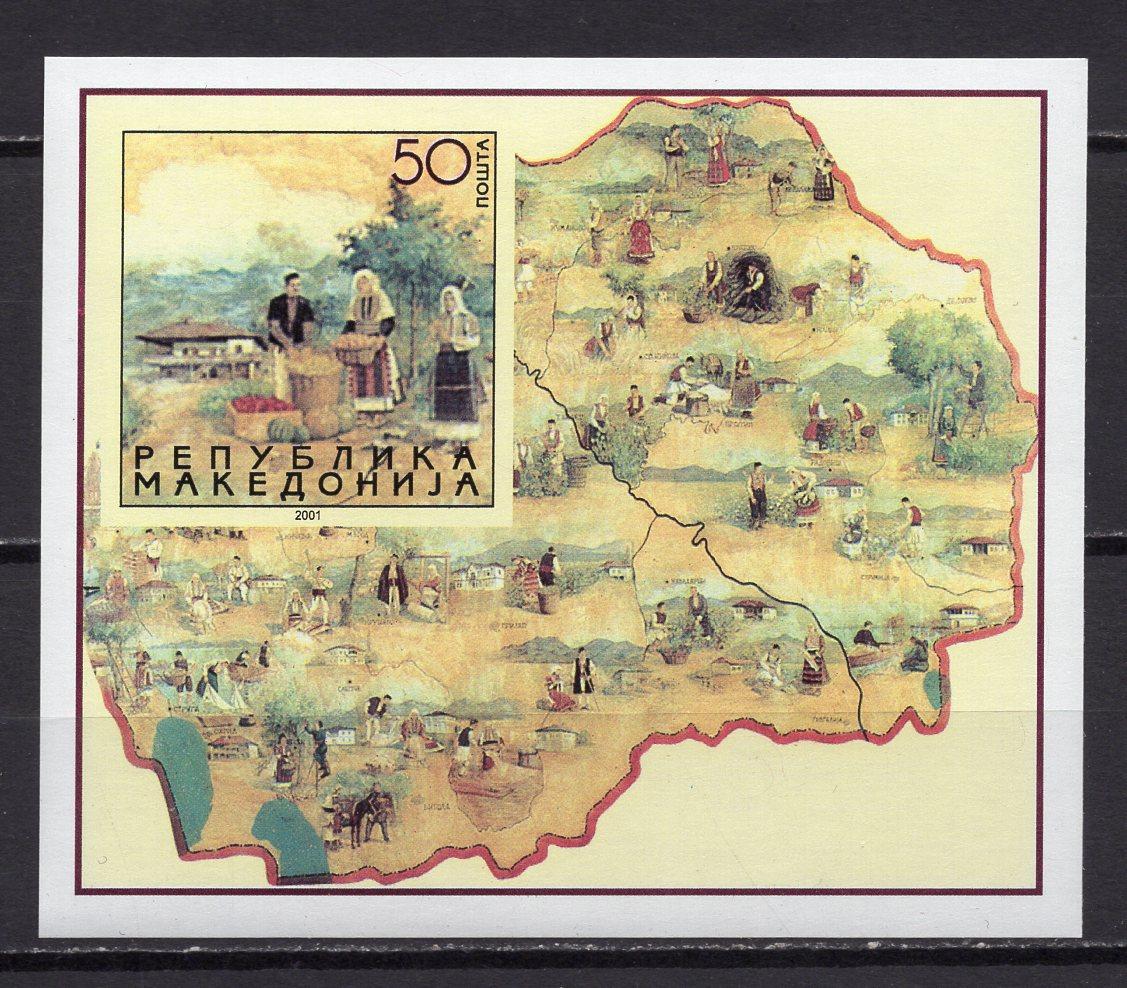 Почтовые марки. Македония, 2001 г. Нац. костюмы. Бл. 8