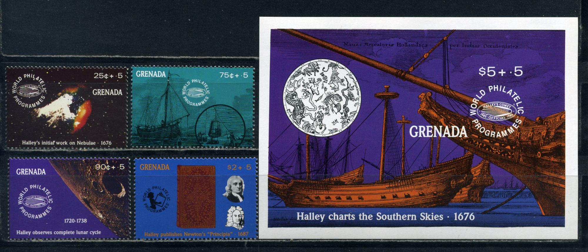 Почтовые марки. Гренада. 1989г. Космос. Филателия. Комета. №1971-1974. Блок №219.