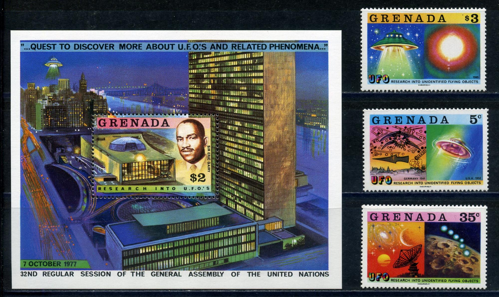 Почтовые марки. Гренада. 1978г. Космос. Уфология. №919-921. +БЛ 75