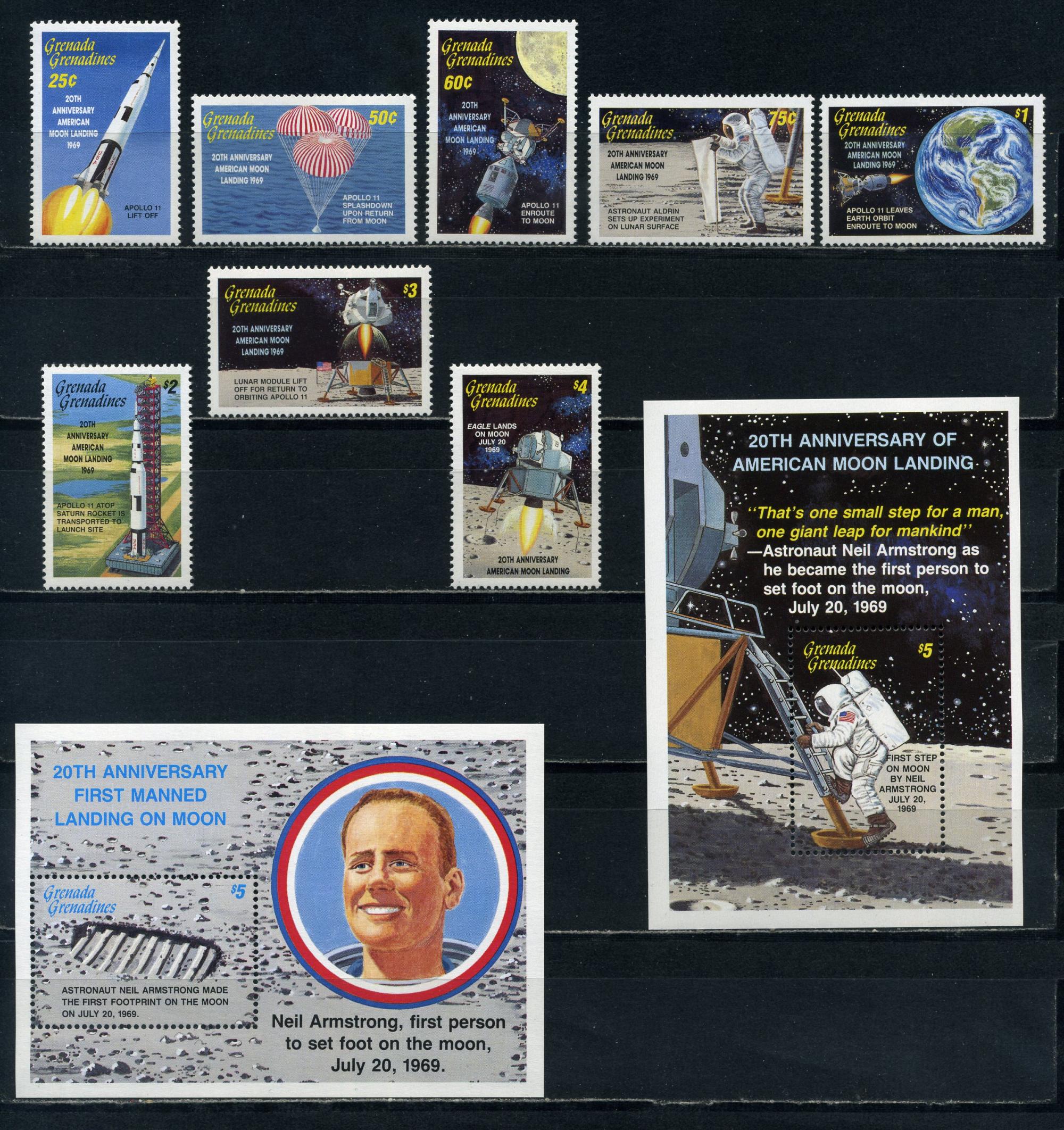 Почтовые марки. Гренада Гренадины. 1989г. Космос. №1181-1188. Блок №172-173.