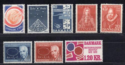 Почтовые марки. Дания, 1944-1983. №285, 294 etc. Астрономия. Нильс Бор. ITU. Сб. лот.
