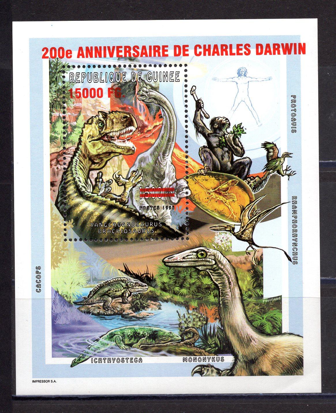 Почтовые марки. Гвинея. 2009г. Динозавры. Надпеч. Блок №1736.