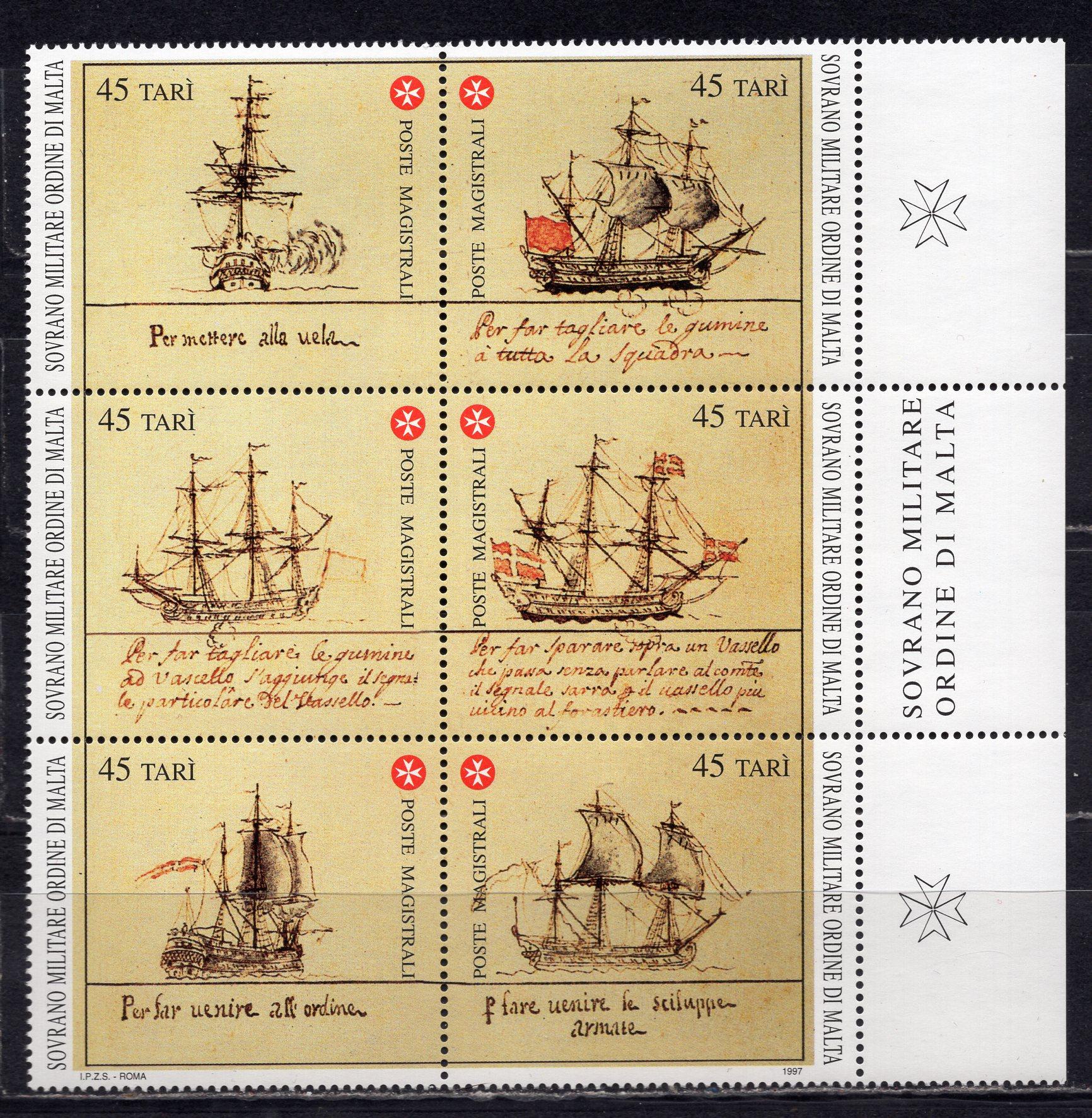 Почтовые марки. Мальтийский орден, 1997 г. Корабли. №536-541.