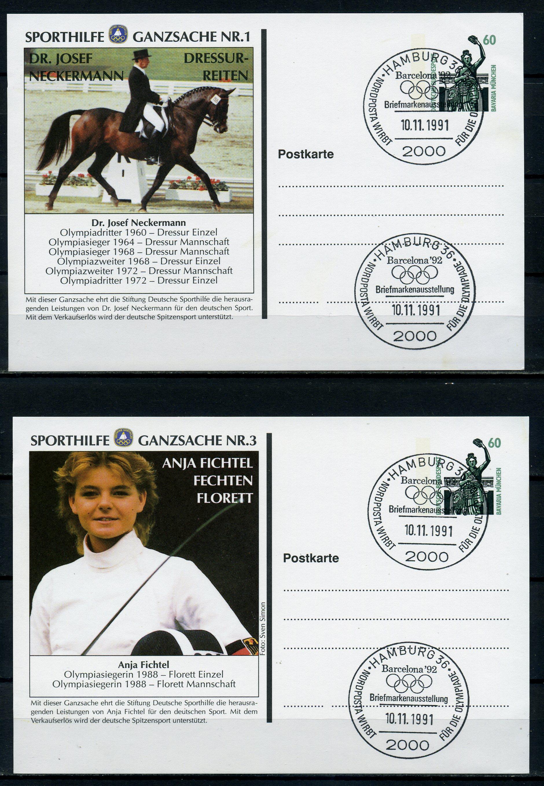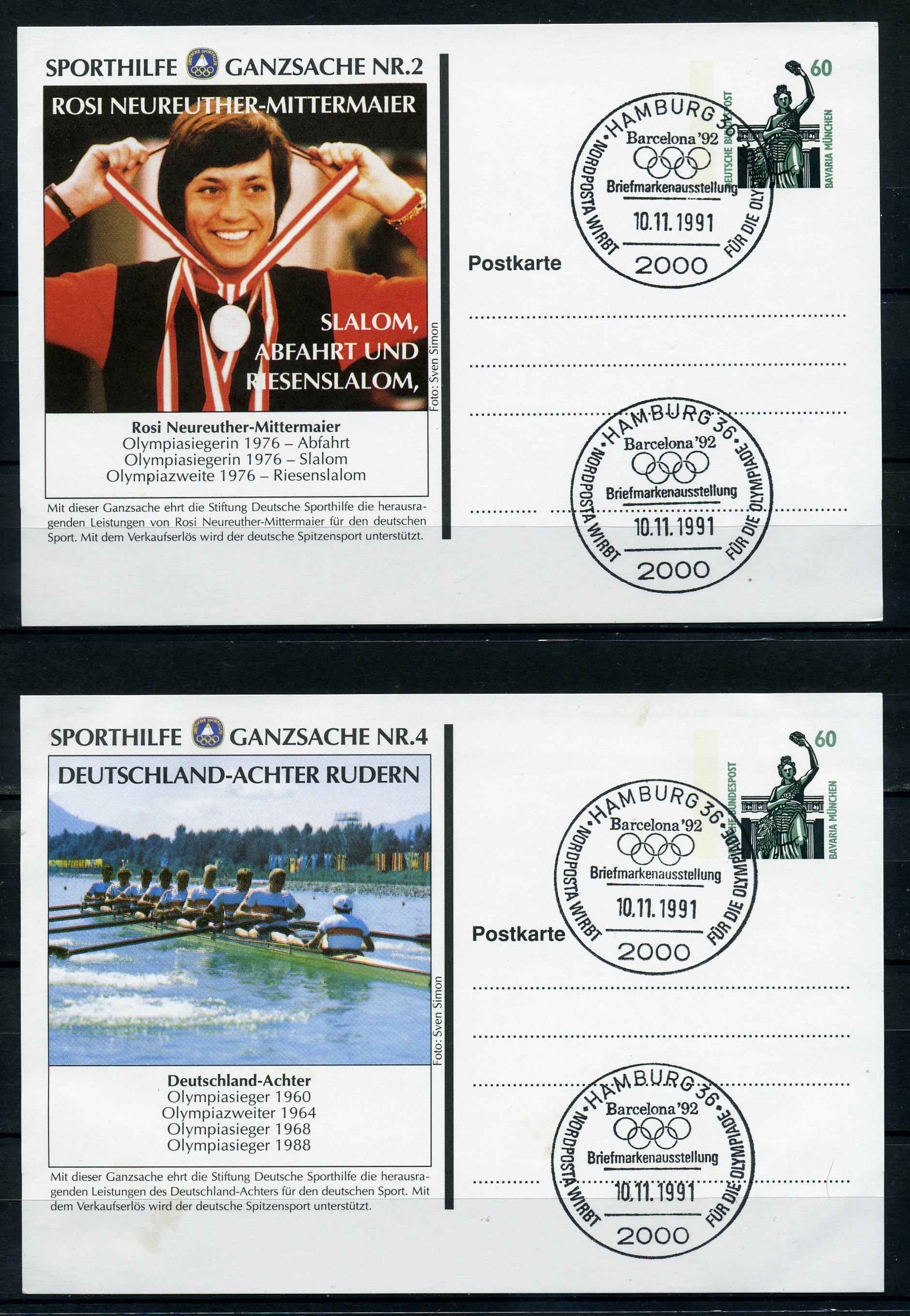 Почтовые карточки со СГ. ФРГ 1991 г. Выдающиеся спортсмены.
