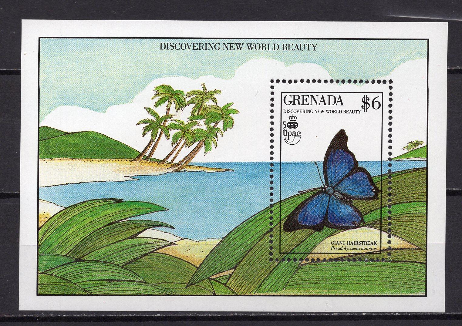 Почтовые марки. Гренада, 1990 г. Бабочки. Бл. 240.