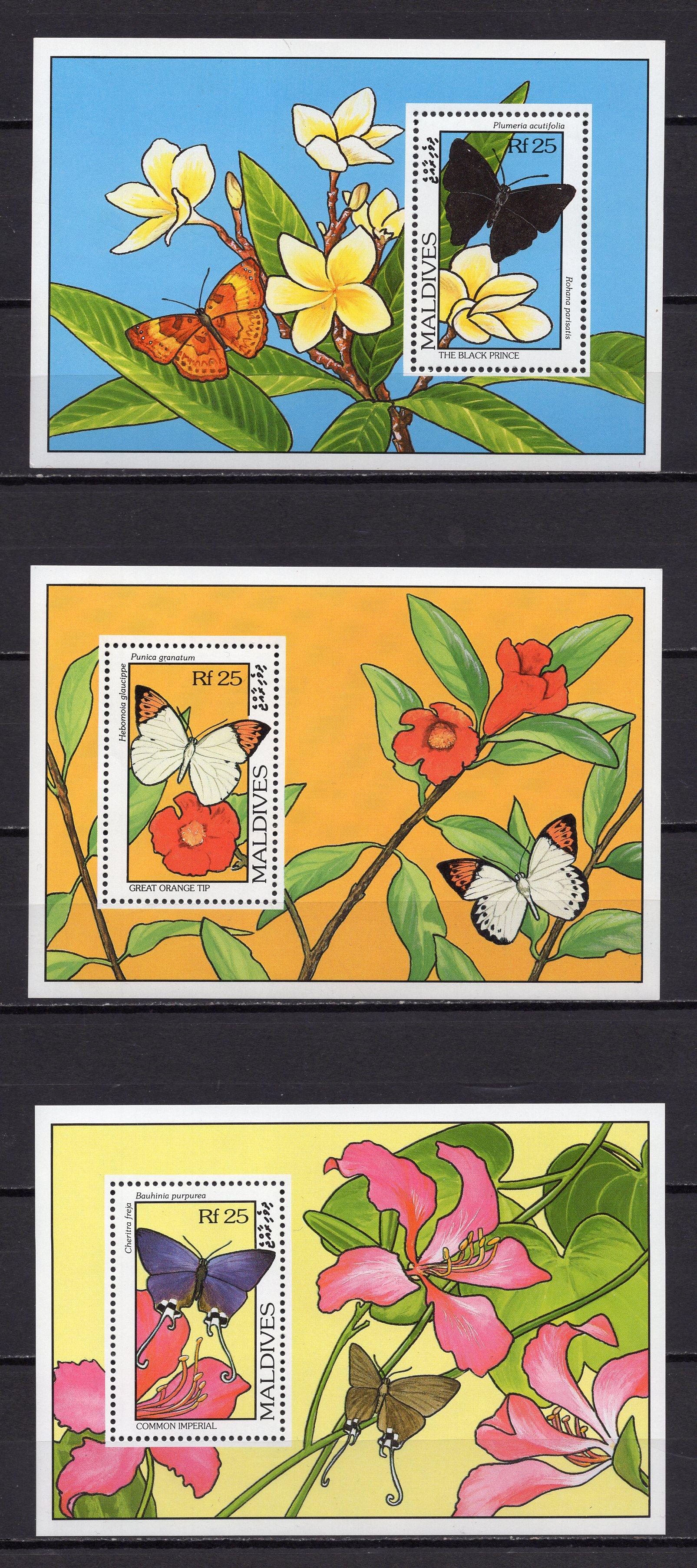 Почтовые марки. Мальдивы, 1993 г. Бабочки. Бл. 294-296. (27,0 е)
