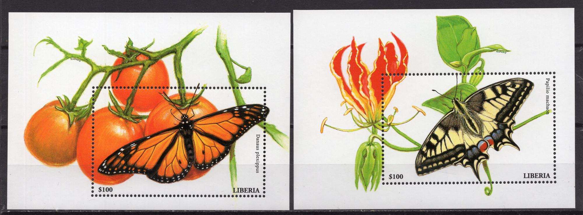 Почтовые марки. Либерия, 2001 г. Бабочки. Бл. 417-418.