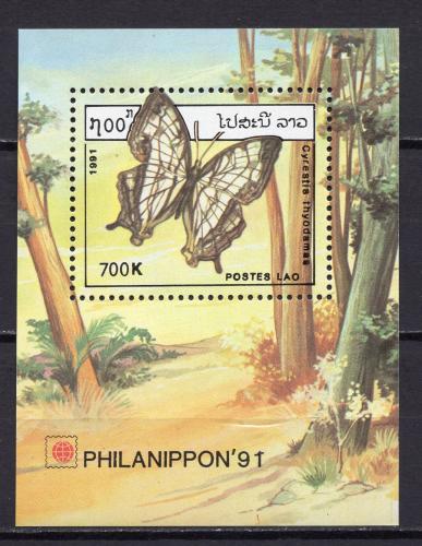 Почтовые марки. Лаос, 1991 г. Бабочки. Бл. 140