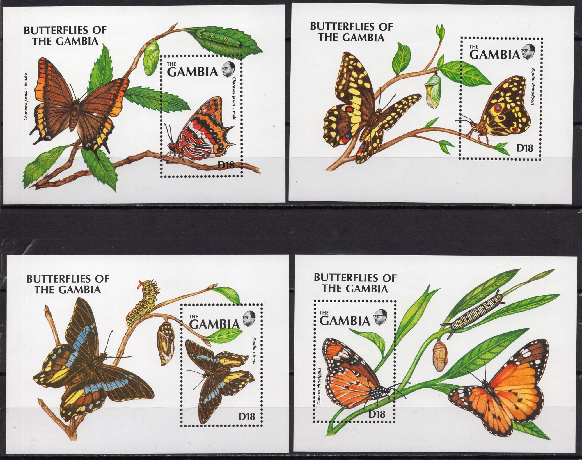 Почтовые марки. Гамбия, 1991 г. Бабочки. Бл. 112-115. (32,0 е)