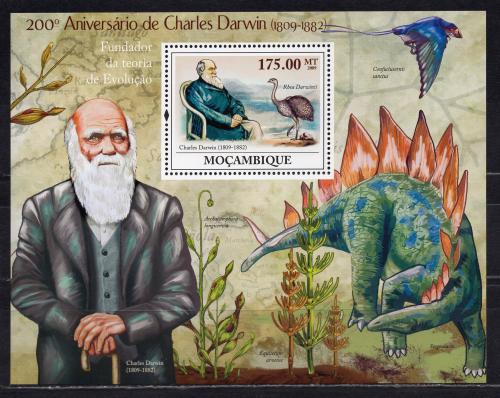 Почтовые марки. Мозамбик, 2009 г. Бл. 284. Чарльз Дарвин. Динозавры.