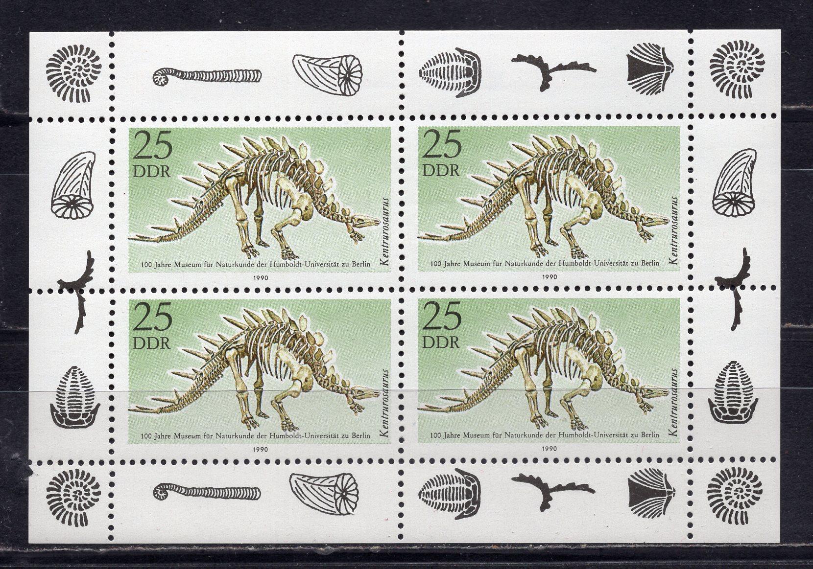 Почтовые марки. ГДР, 1990 г. Динозавры. МЛ №3325.