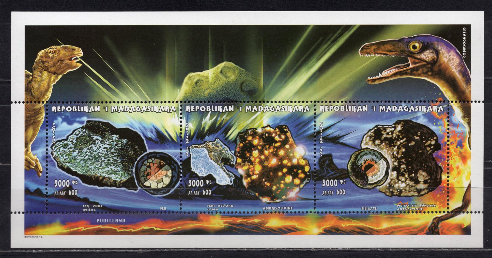 Почтовые марки. Мадагаскар, 1997 г. №1894-1897. Минералы. Метеорит. МЛ.