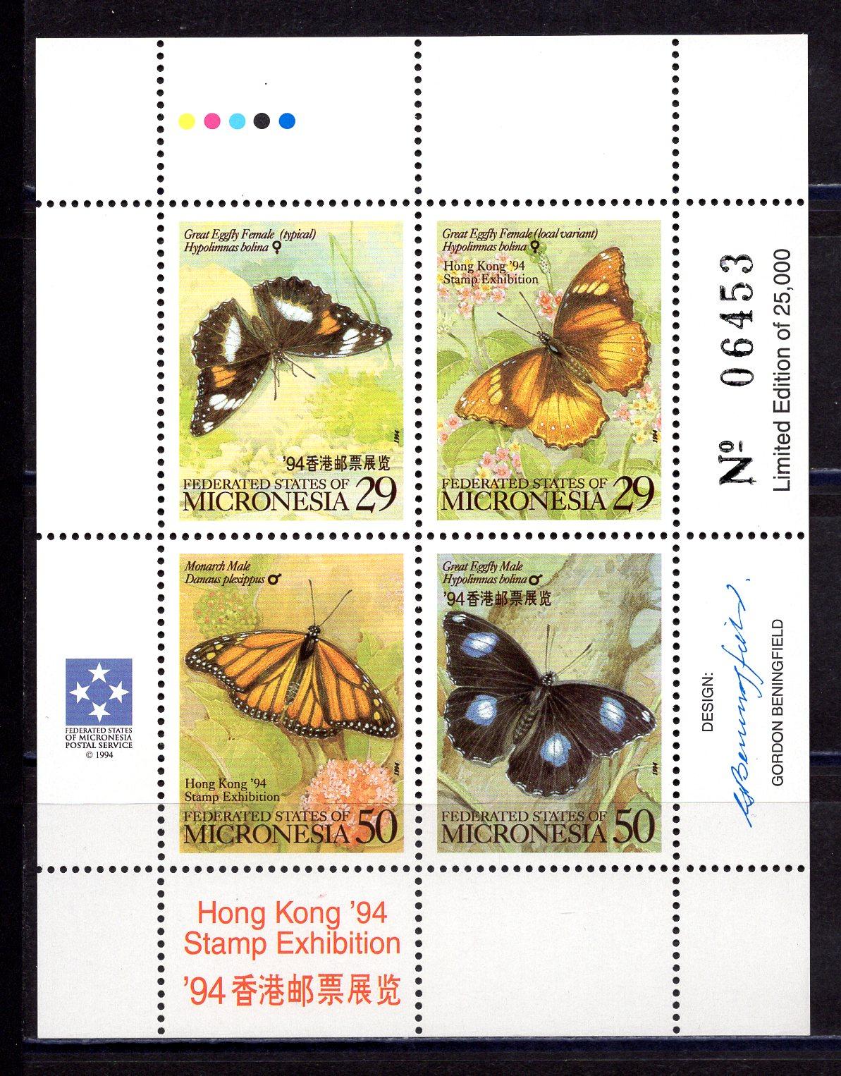 Почтовые марки. Микронезия. 1994г. Бабочки. МЛ. №340-343.