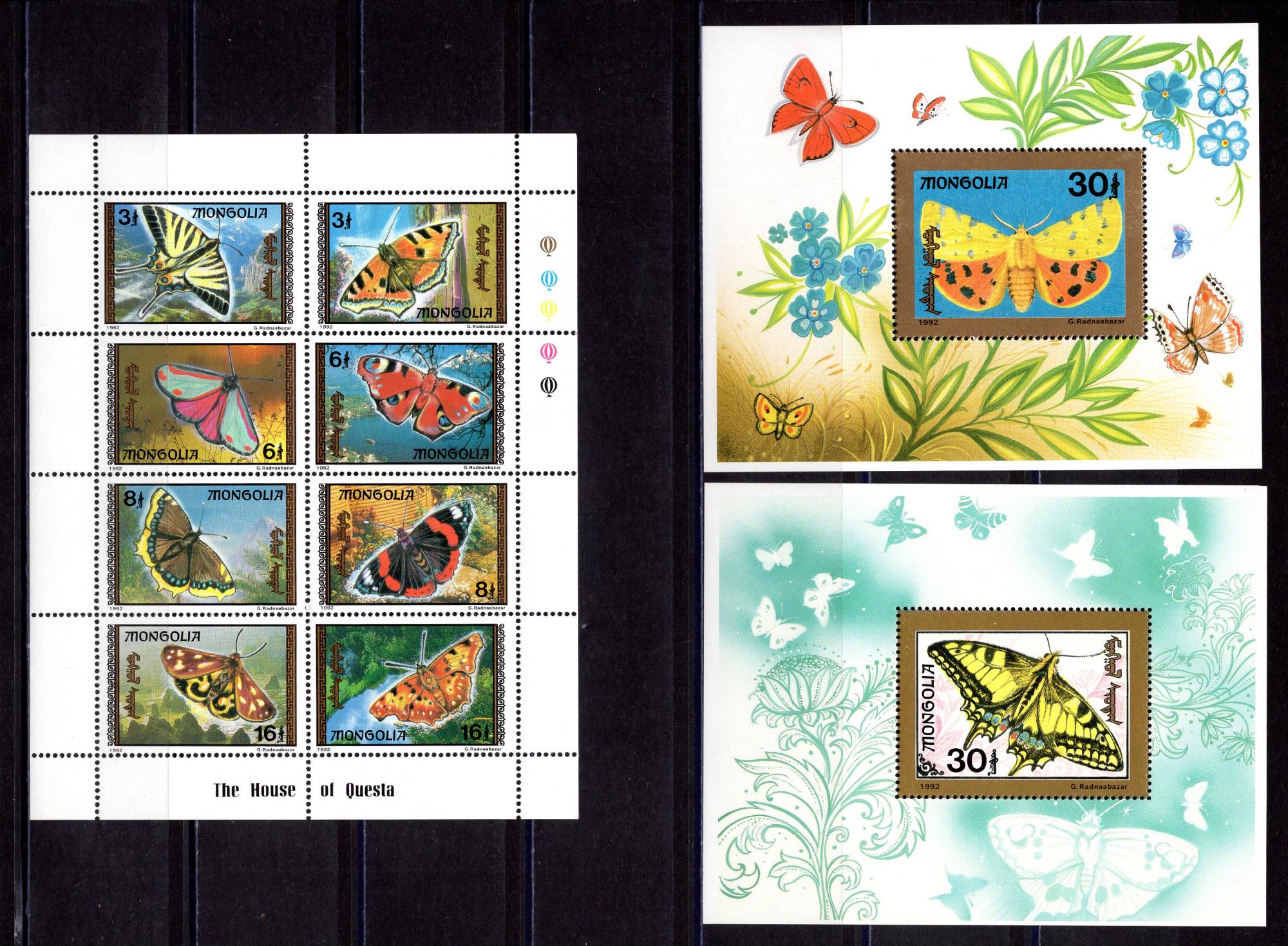 Почтовые марки. Монголия. 1992г. Бабочки. №2400-2407, Блок №191-192.