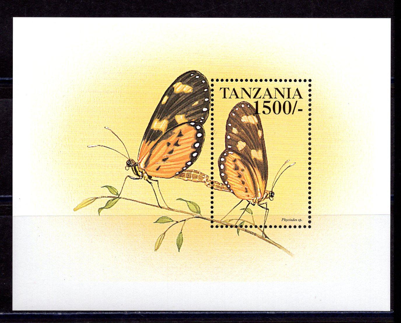 Почтовые марки. Танзания. 1999г. Бабочки. Блок №445.