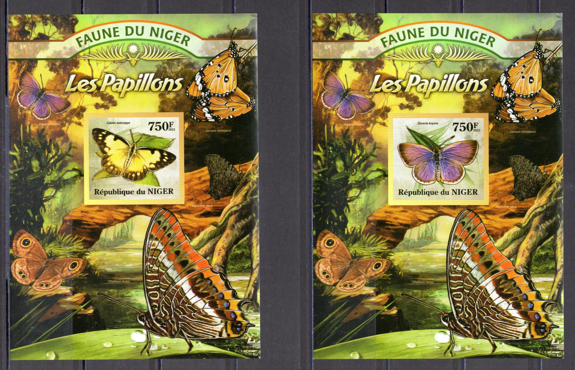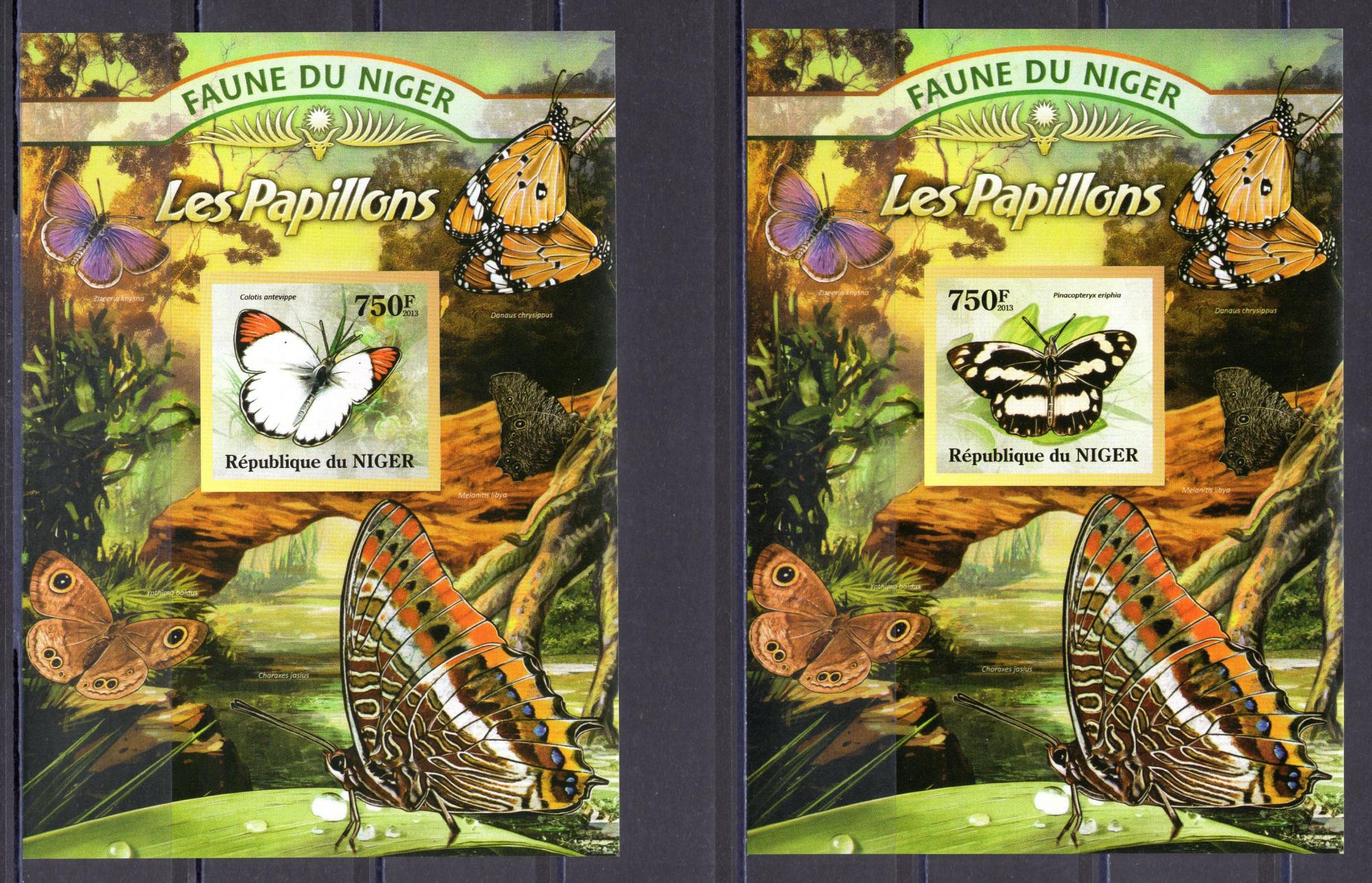 Почтовые марки. Нигер. 2013г. Бабочки. Люкс-Блоки. №2025-2028.