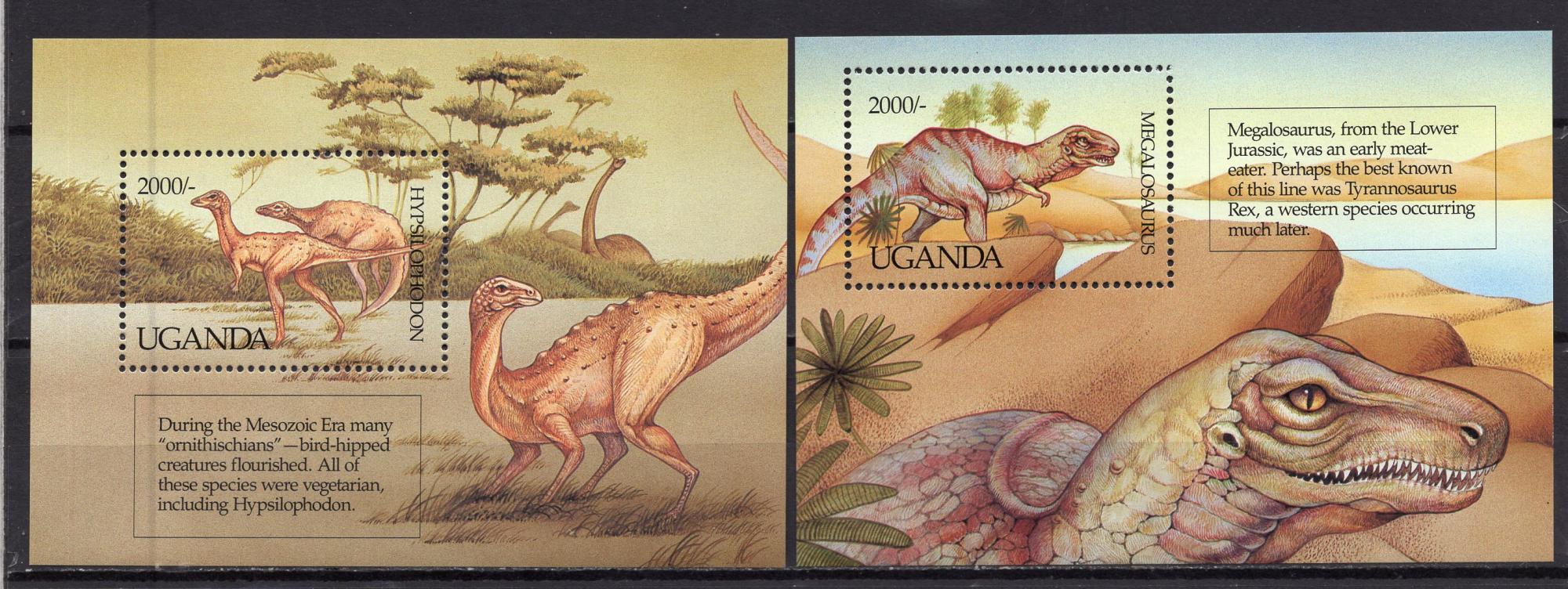 Почтовые марки. Уганда, 1902 г. Динозавры. Бл. 161-162. (19,0 е)