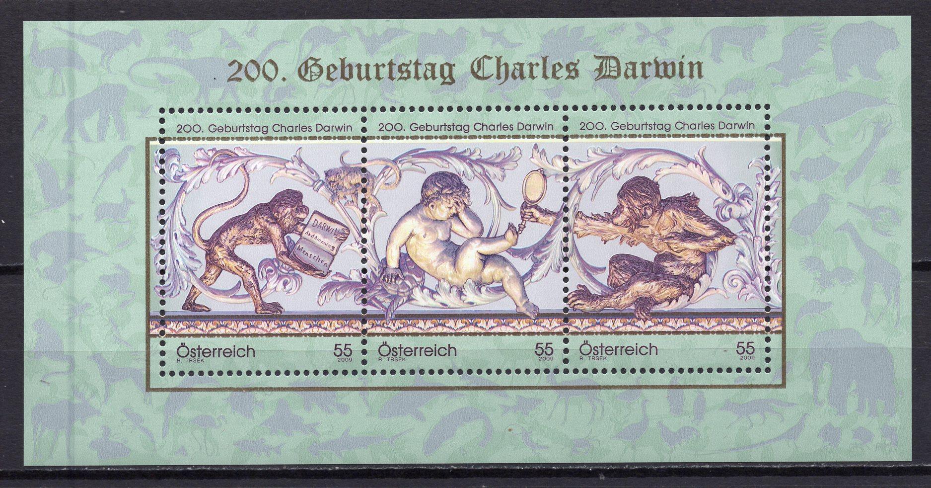 Почтовые марки. Австрия, 2009 г. Дарвин. Бл. 57