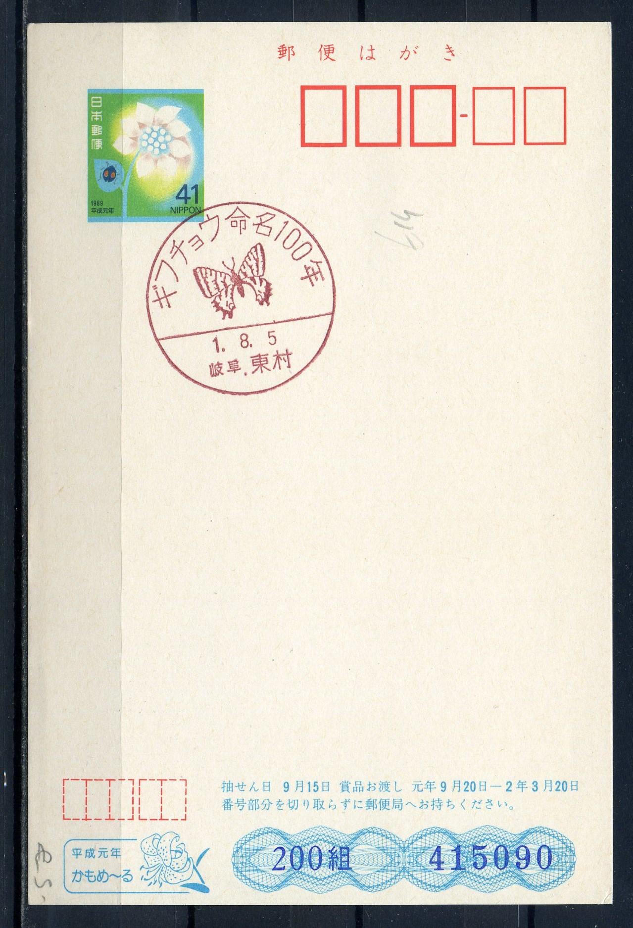 Маркированная карточка со СГ и с розыгрышем призов. Япония 1989 г.