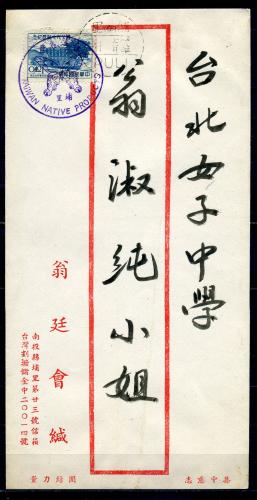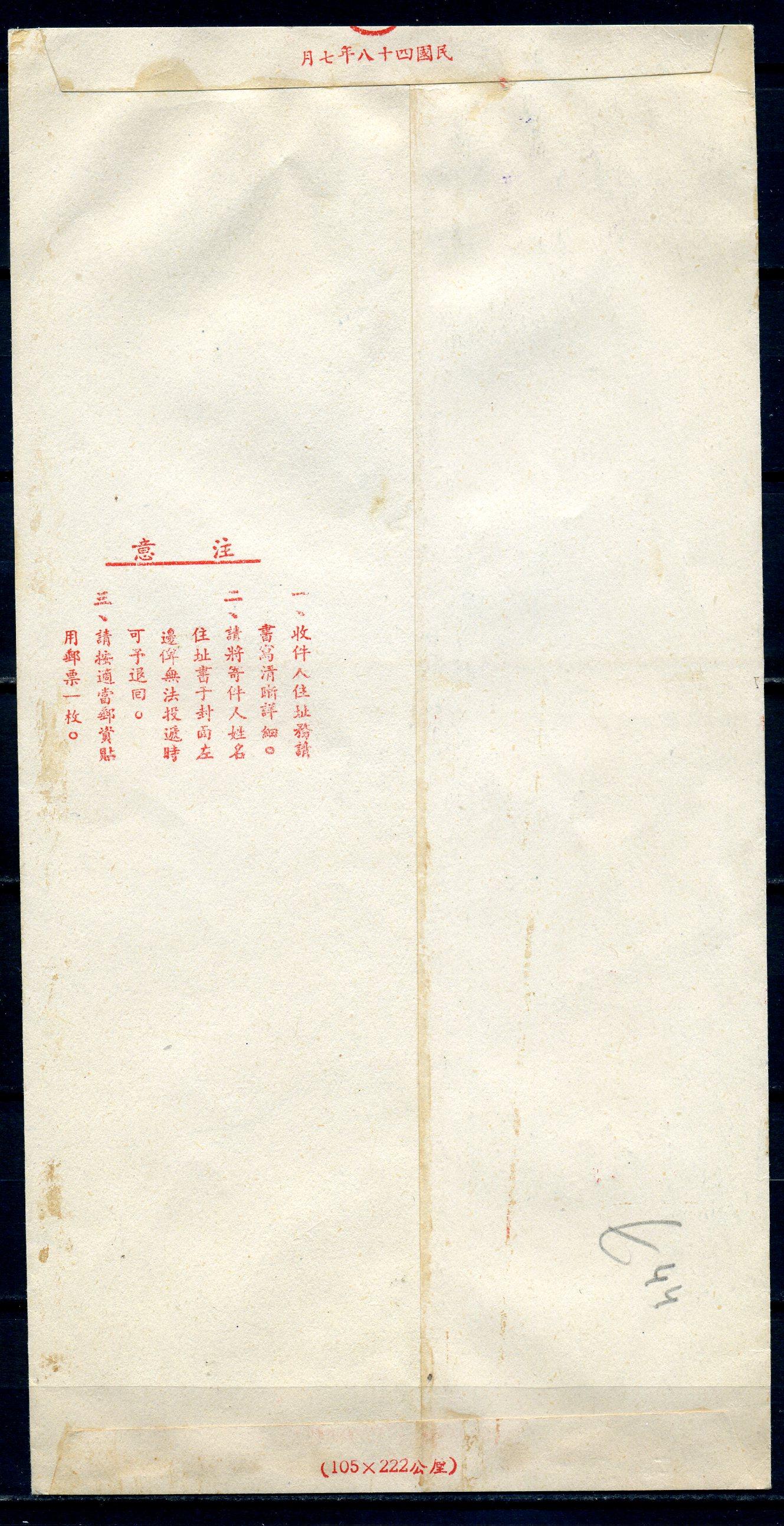 Конверт с маркой и СГ. Тайвань. Марка 1955 г.