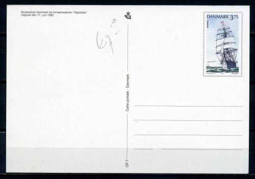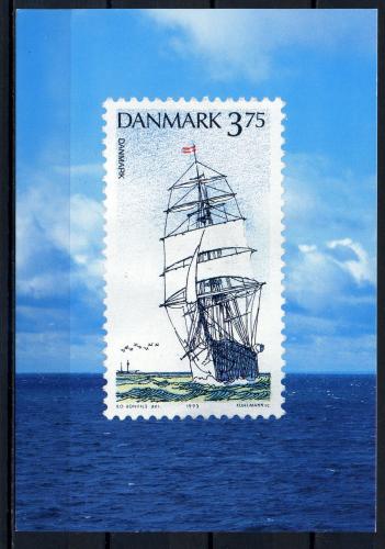 Почтовая карточка. Дания 1993 г. Парусный корабль "Дания" (1933)