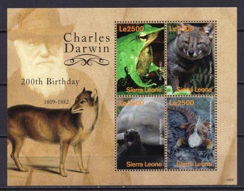 Почтовые марки. Сьерра-Леоне, 2010 г. Ч. Дарвин. Животные. МЛ. №5324-5327.
