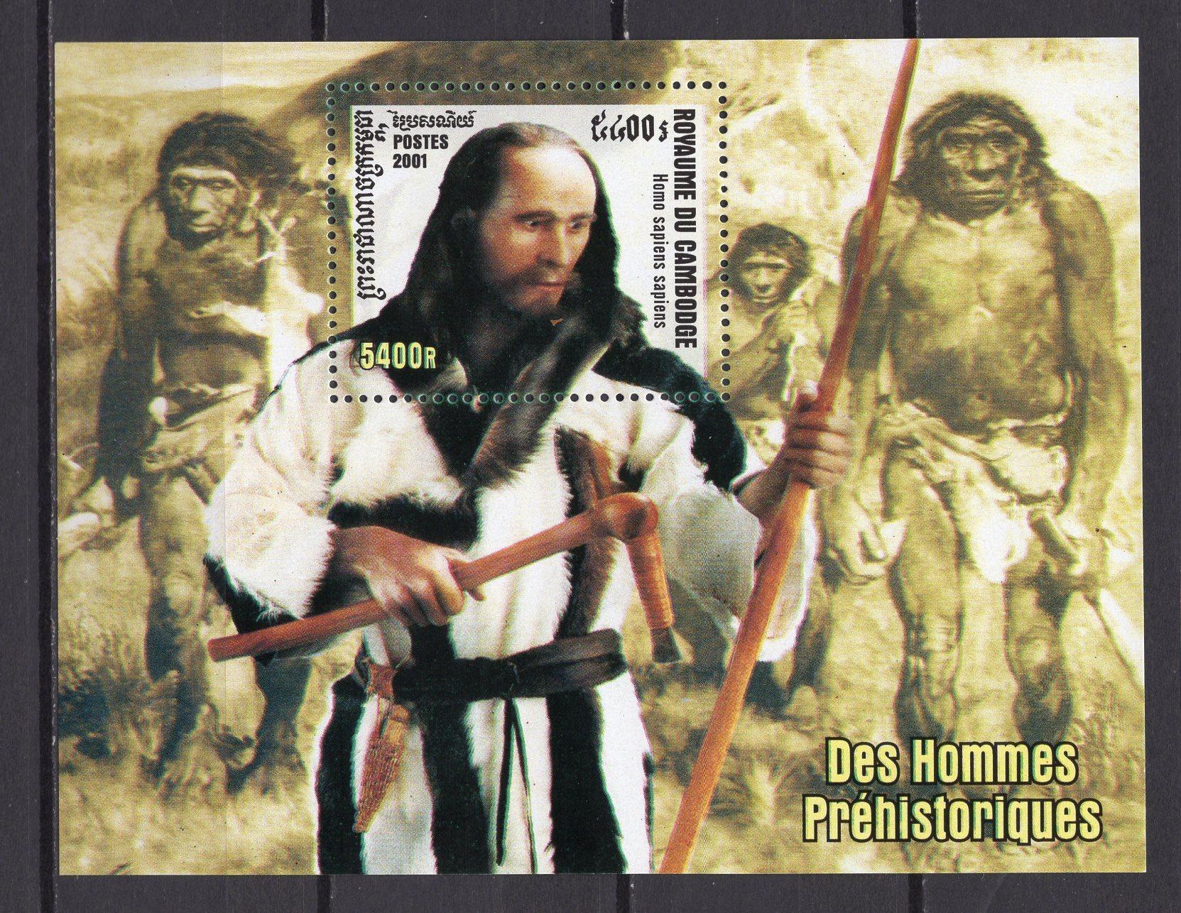 Почтовые марки. Камбоджа, 2001 г. Доисторический человек. Бл. 291.