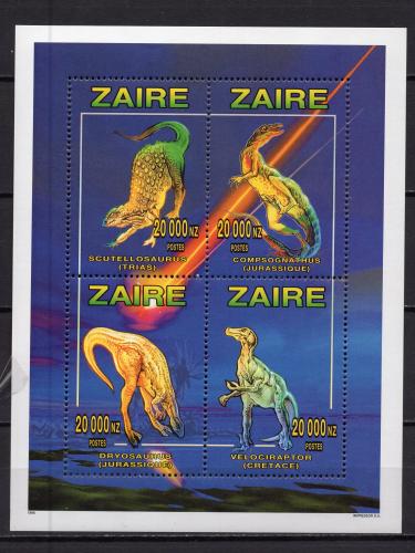 Почтовые марки. Заир, 1996 г. Динозавры. №1140-1143. МЛ.