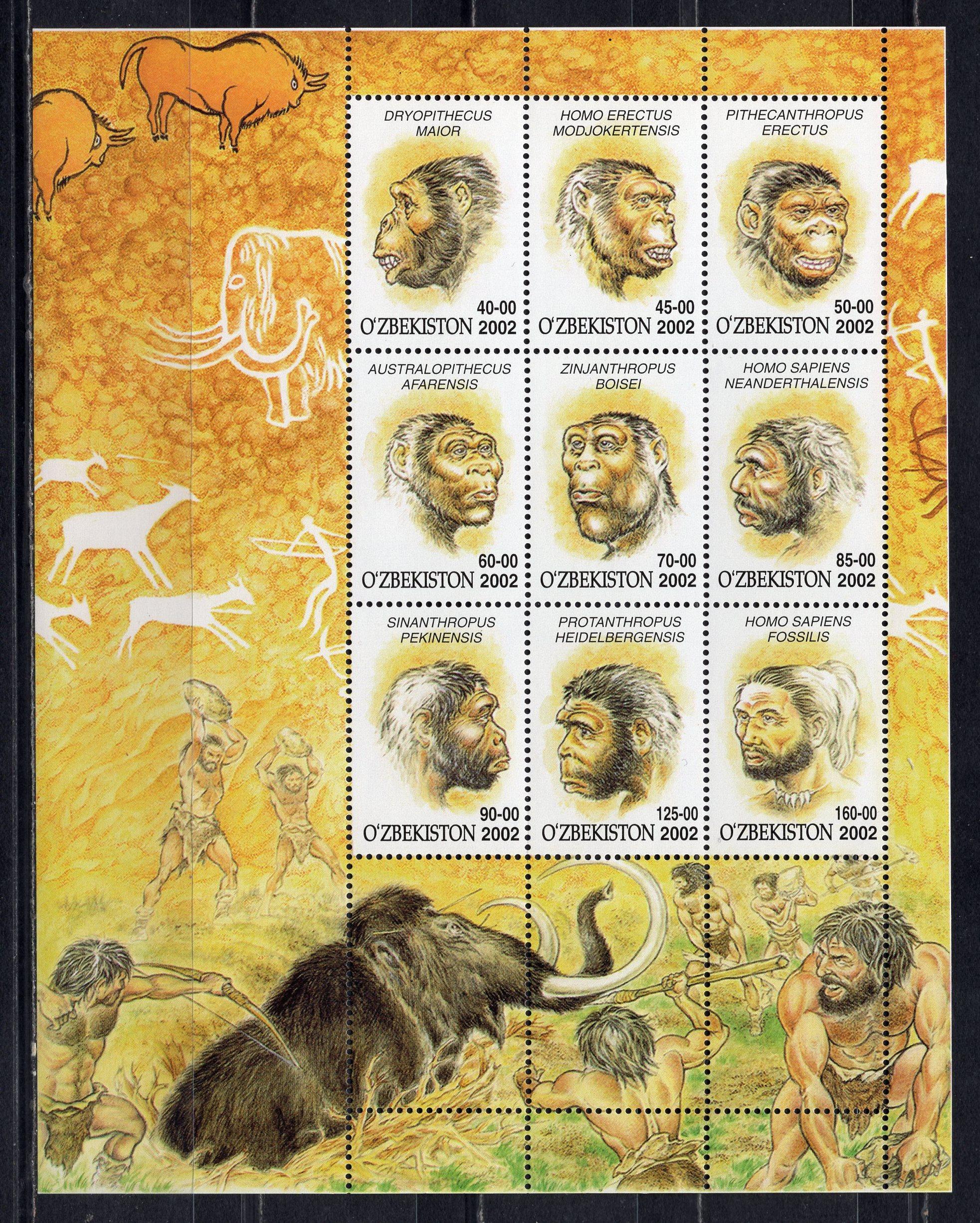 Почтовые марки. Узбекистан, 2002 г. Эволюция homo sapiens. №442-450. МЛ