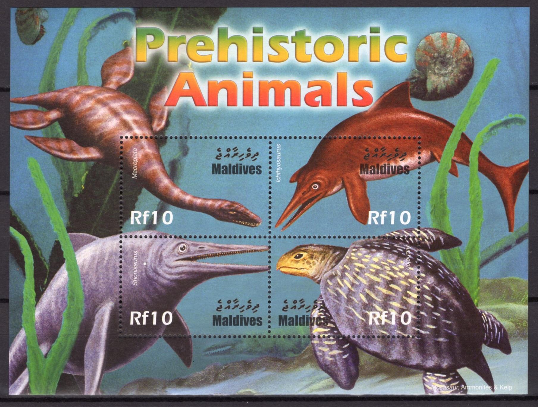 Почтовые марки. Мальдивы, 2005 г. Доисторические животные. №4437-4440. МЛ.