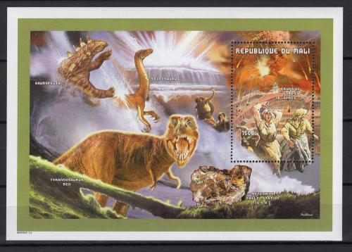 Почтовые марки. Мали, 1999 г. Гибель Помпеи. Динозавры. Бл. 134