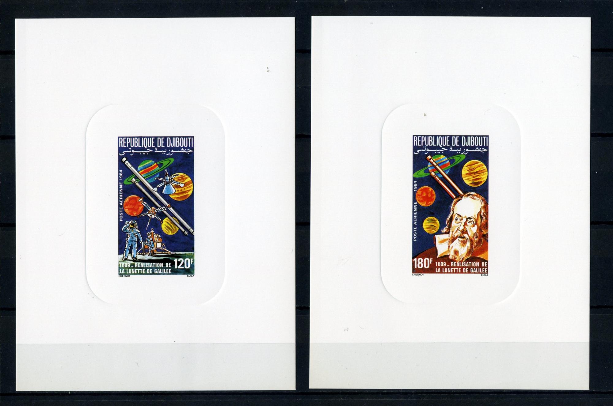 Почтовые марки. Джибути. 1984г. Космос. Галилей. №420-421. Люкс-Блоки. Тиснение.