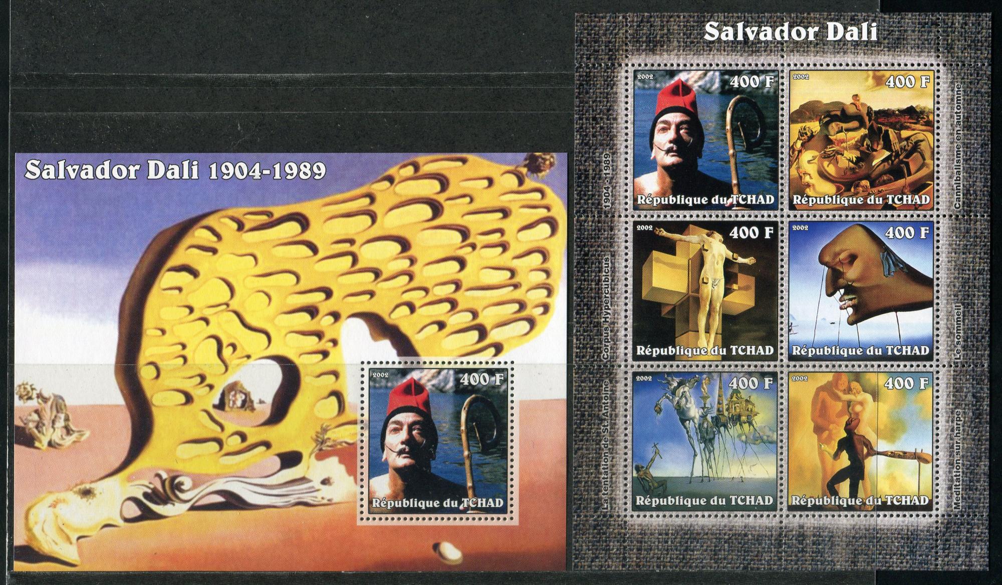Почтовые марки. Чад, 2002 г. Сальвадор Дали. MiNr. 2346 - 2351, Блок № 346.