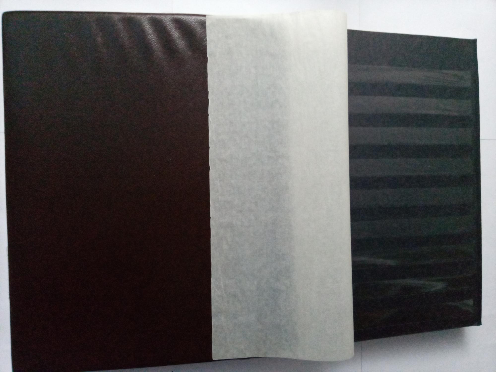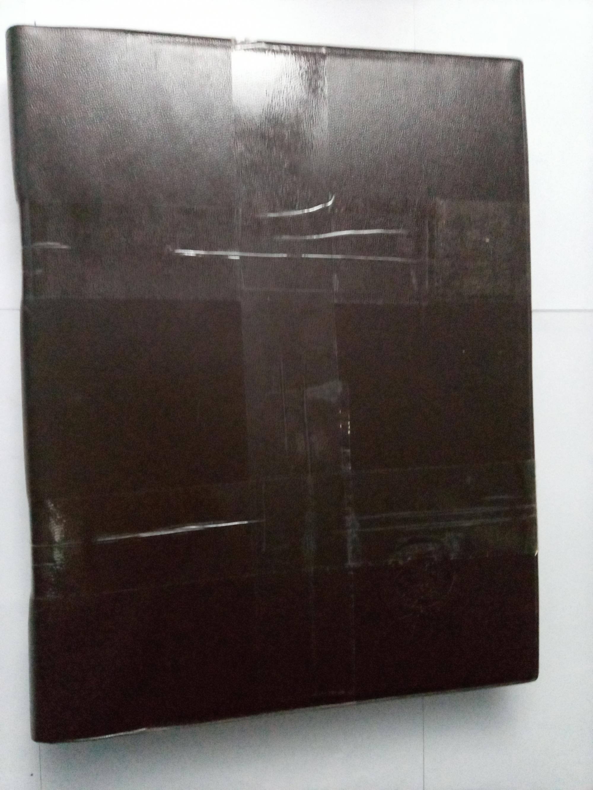 Альбом для марок в чехле и коробке. 26 черных страниц (13 листов). Цвет - темно-коричневый. 330 х 250 мм. Б/У. См. сост.