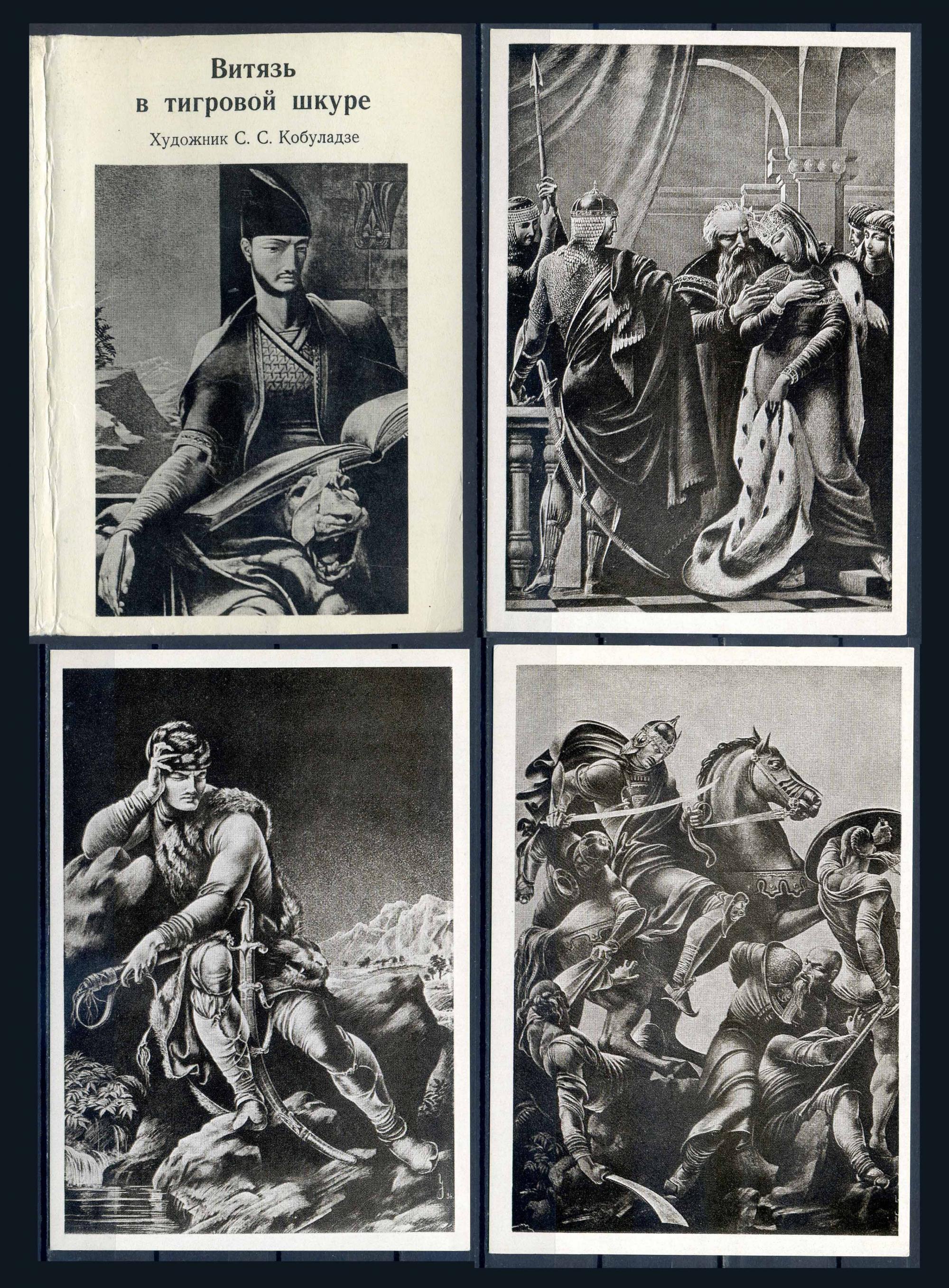 Комплект открыток. СССР 1978 г. С.С. Кобуладзе. Витязь в тигровой шкуре. 12 открыток (полный). Б/У
