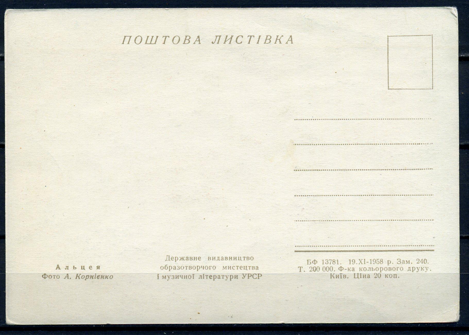 Почтовая карточка УССР 1958 г. Альцея.