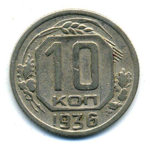 Монеты СССР. 10 копеек 1936 г.