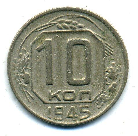 Монеты СССР. 10 копеек 1945 г.