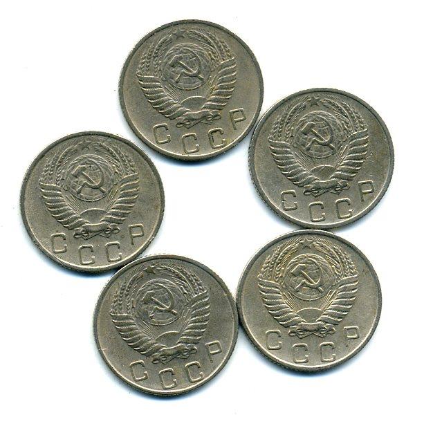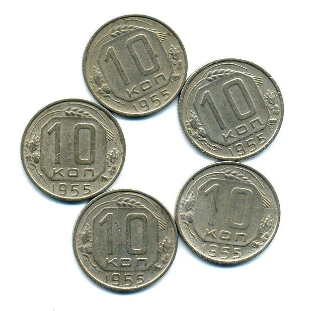 Монеты СССР. 10 копеек 1955 г. 5 шт.