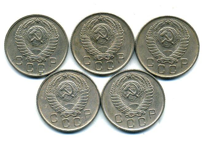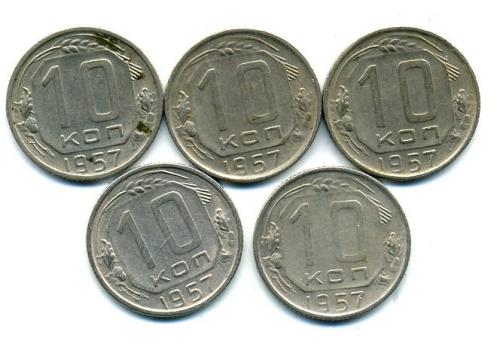 Монеты СССР. 10 копеек 1957 г. 5 шт.