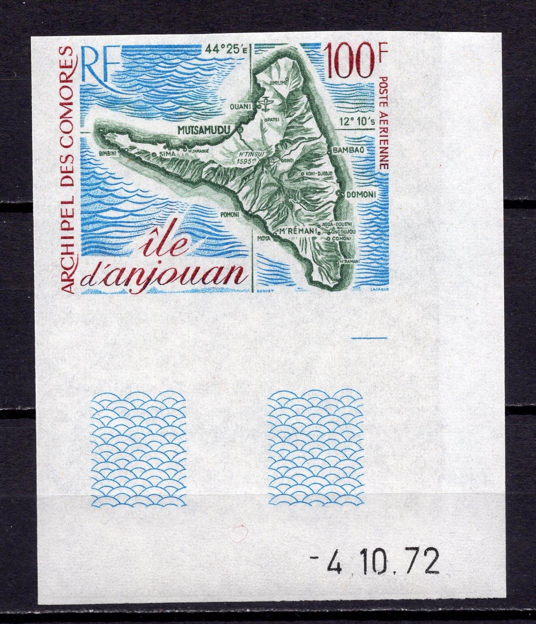 Почтовые марки. Коморы, 1972 г. Карты и острова Металлография. БЕЗЗ.