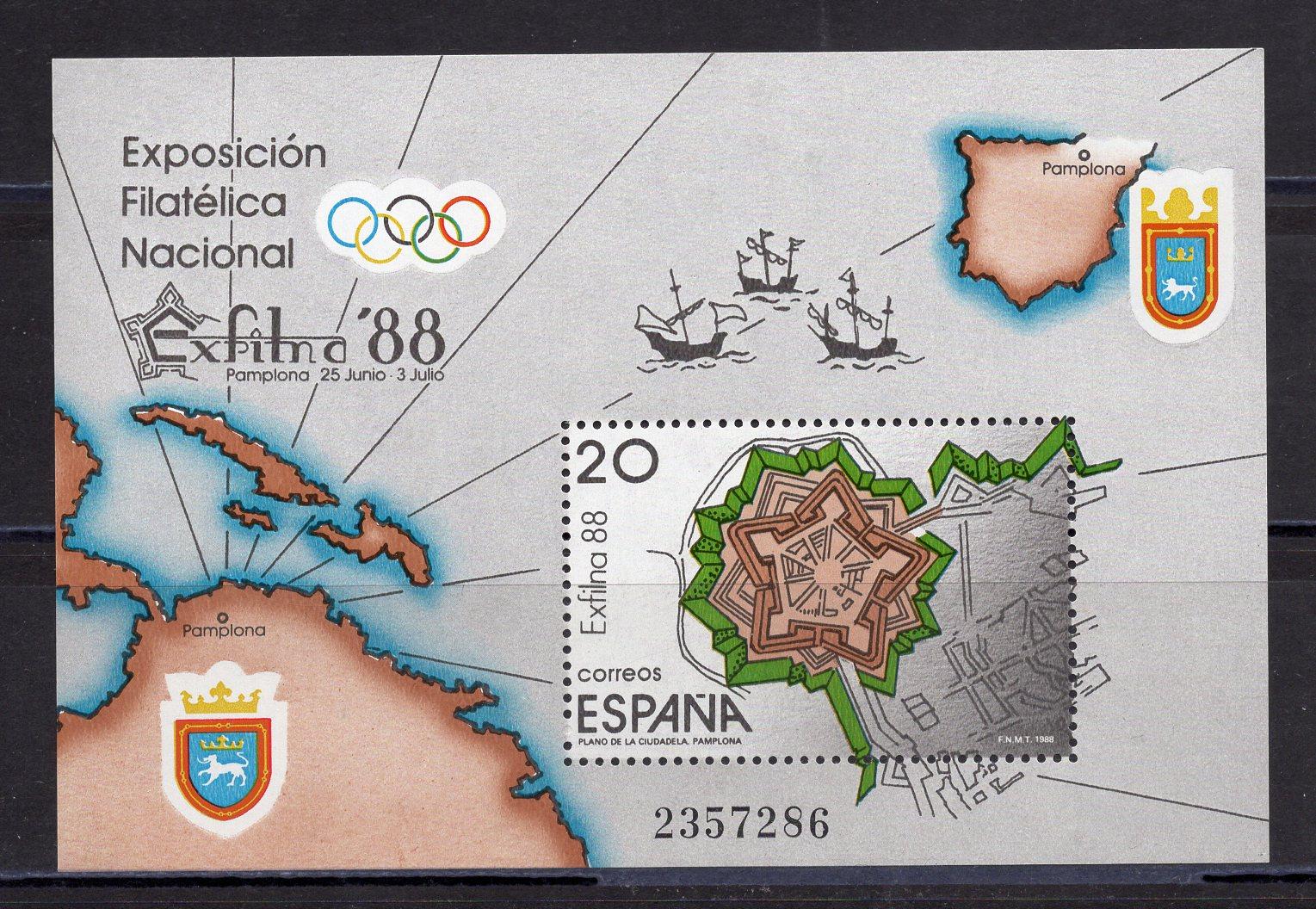 Почтовые марки. Испания. 1988г. Филвыставка в Памплоне. Ол.Игры. Блок №32.