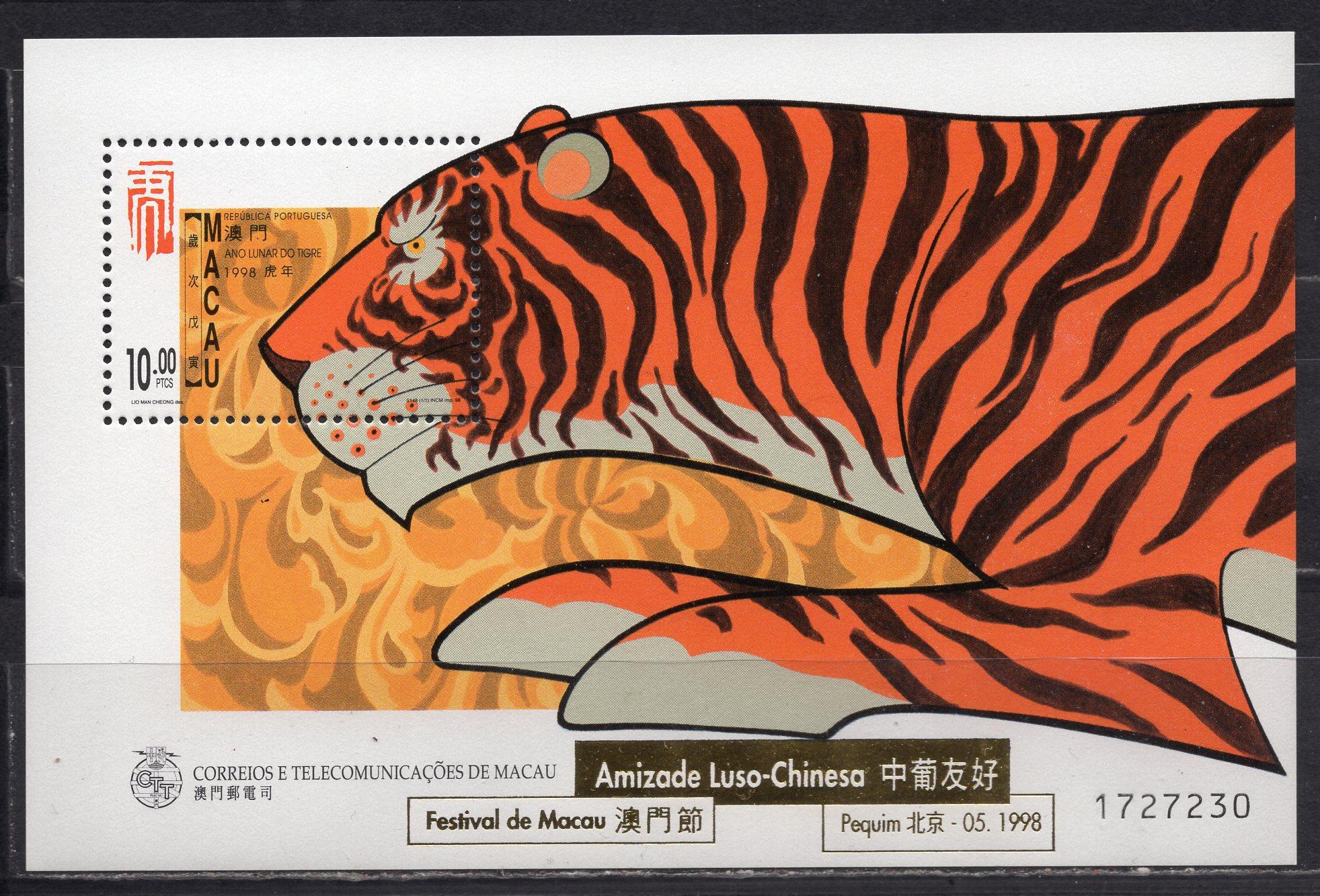 Почтовые марки. Макао, 1998 г. Год тигра. Надпечатка.