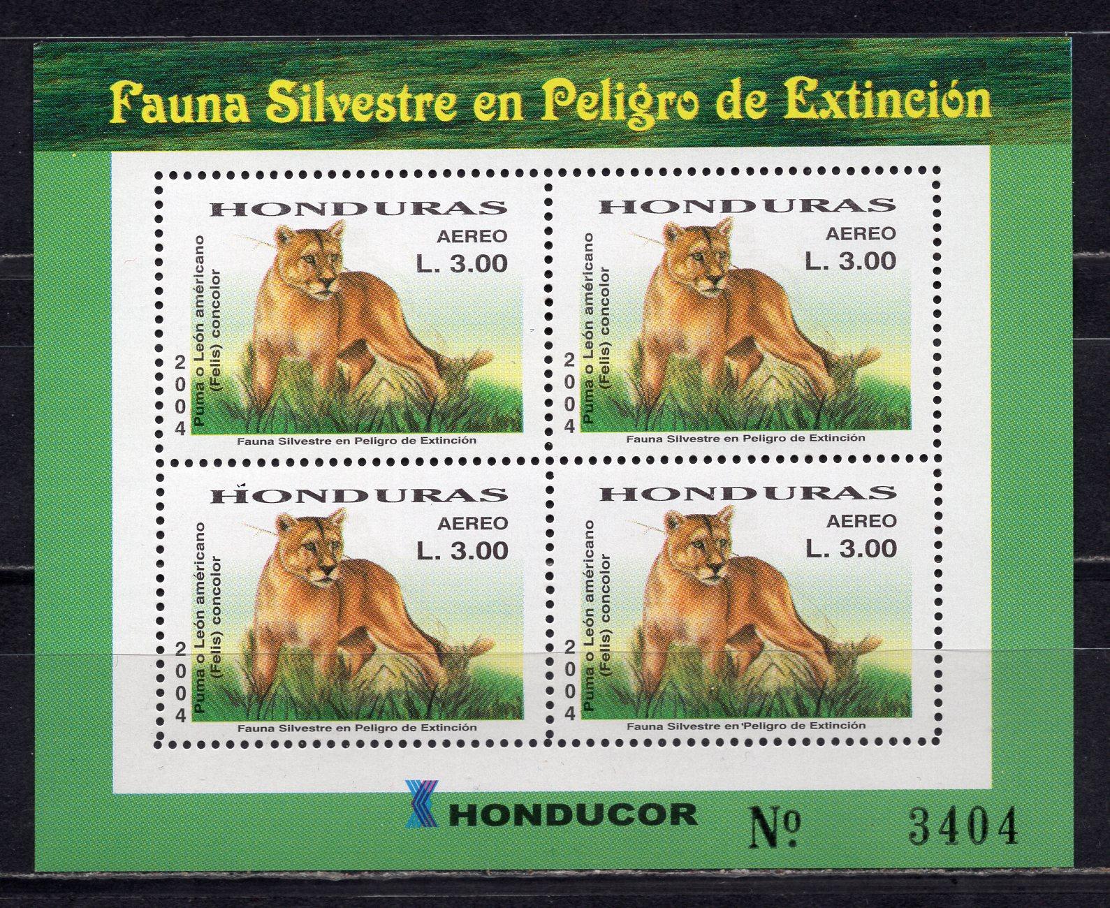 Почтовые марки. Гондурас, 2004 г. №1731. Пума. МЛ.