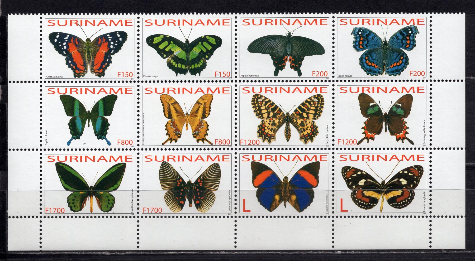 Почтовые марки. Суринам, 2004 г. Бабочки. №1896-1907. (24,0 е)