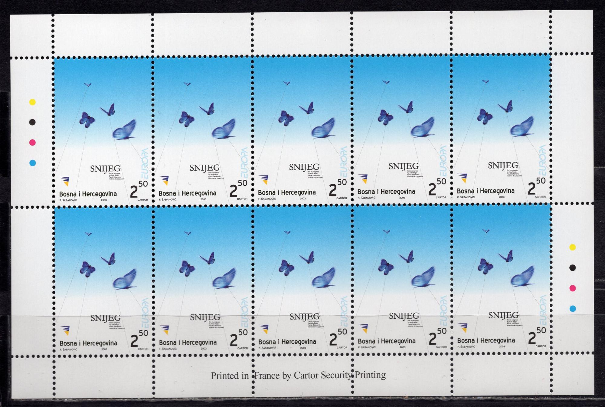 Почтовые марки. Босния, 2003 г. Европа. Искусство. Бабочки. МЛ. (30,0 е)
