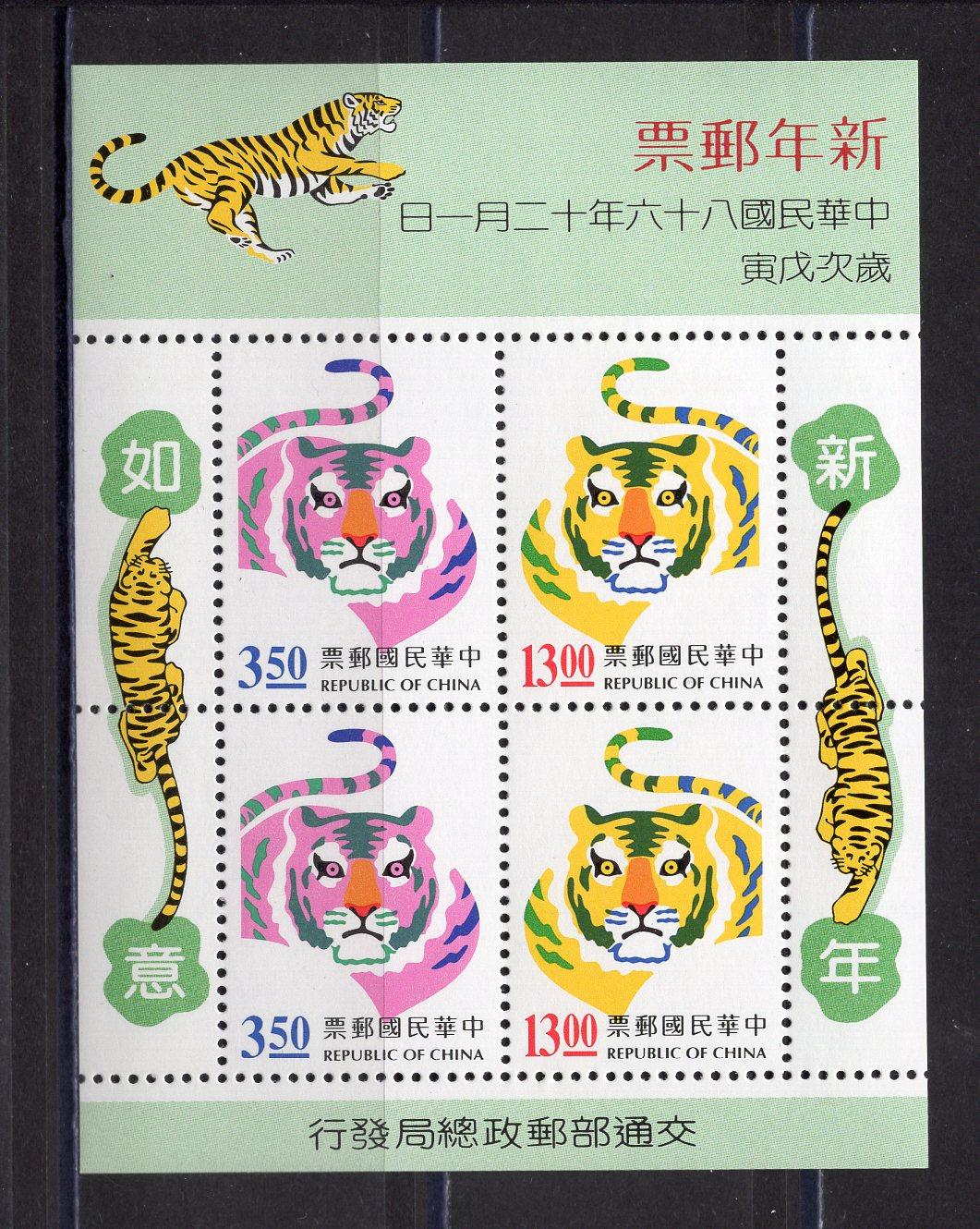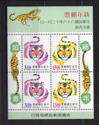 Почтовые марки. Тайвань. 1997г. Год Тигра. Блок №70.