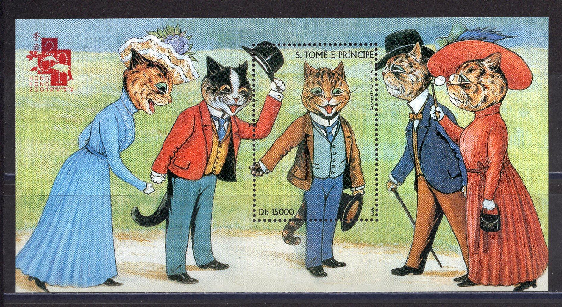 Почтовые марки. Сан-Томе. 2001г. Живопись. Кошки. Блок №394.
