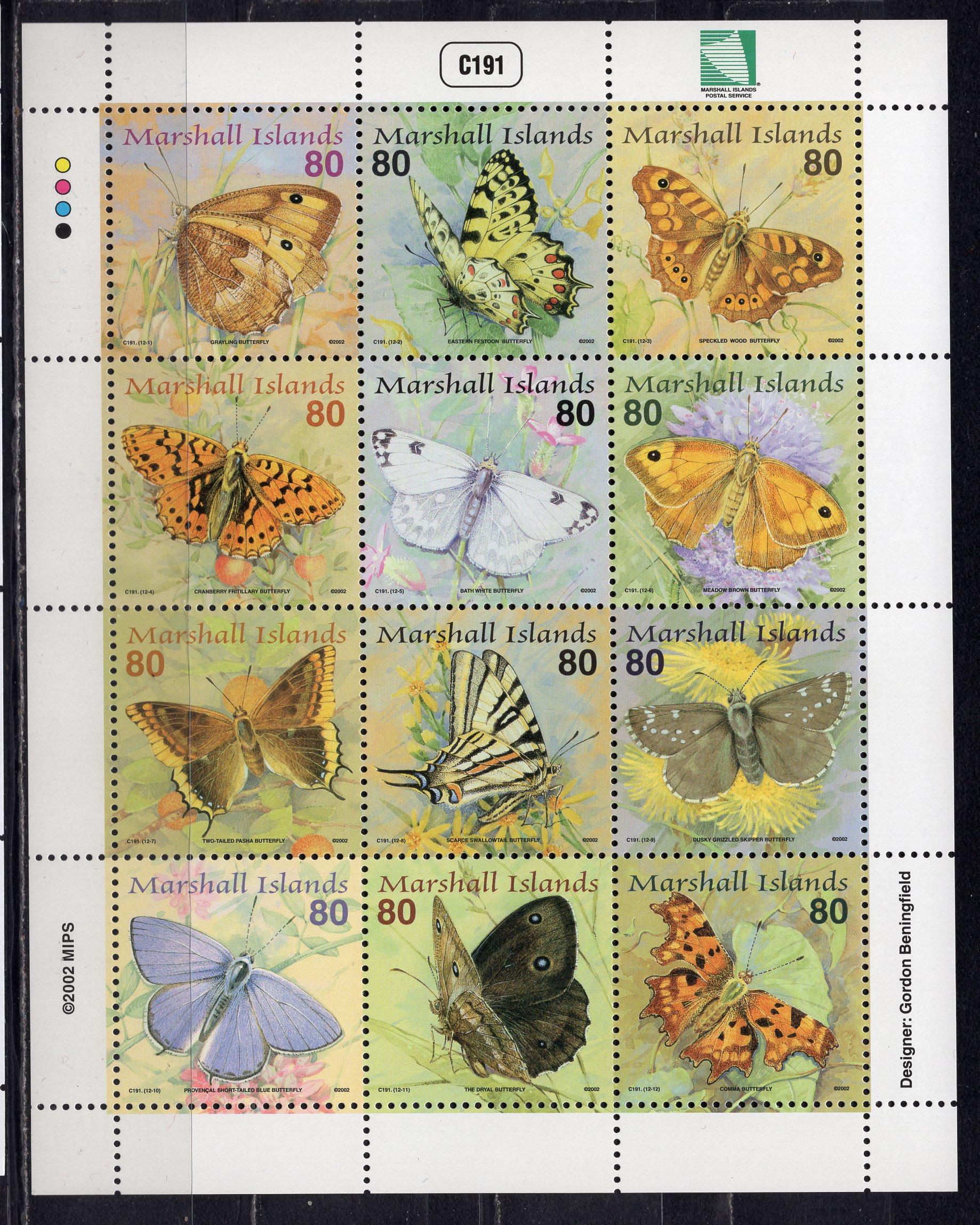 Почтовые марки. Маршаллы, 2002 г. Бабочки. №1570-1581. МЛ. (Mi 25.0 e)
